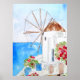 Greek windmill ink and watercolor poster