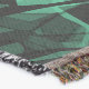 A quality printed throw has its advantages. This is a much finer weave throw than its loopier cousins, and though lighter, it is worth the investment for custom room accessorizing. The back is much prettier than the typical brown, and the fringe on the long sides very vivid, the selvage nicely done. Before photographing, I washed the throw in cold water, delicate, with a thicker woven throw the same size. On tumble dry low, this throw was dry in half the time as the other. This is a very practical quality if you use throws for furniture covers or to wrap up in frequently. The sleekness of the fabric makes it a great layer for accenting or protecting without the feeling of sitting on too much stuff. Perfect for napping or when you feel a light chill coming on. The color printing is beautiful and on this fabric, matched the design and color of my Photoshop image. This is an advantage for blending room fabrics and colors. The fringe on the short sides prints the colors from the design image and therefore varies from the side fringe. I streaked a white fractal line through the plaid pattern to give the illusion of weaving. This printed as crisp as an illusory thread, and put some white in the short side fringe, showing another advantage of print vs loomed- for artistic purposes, line lines, detail, and color integrity can be planned and preserved. My loomed throws have color limitations and more of a needlepoint texture. Print throws reproduce an exact image. The throw felt a little stiff straight out of the package, but this went away in the first delicate wash. Of course I searched the wash water for ink or bleeding and there was none.
