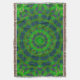 A quality printed throw has its advantages. This is a much finer weave throw than its loopier cousins, and though lighter, it is worth the investment for custom room accessorizing. The back is much prettier than the typical brown, and the fringe on the long sides very vivid, the selvage nicely done. Before photographing, I washed the throw in cold water, delicate, with a thicker woven throw the same size. On tumble dry low, this throw was dry in half the time as the other. This is a very practical quality if you use throws for furniture covers or to wrap up in frequently. The sleekness of the fabric makes it a great layer for accenting or protecting without the feeling of sitting on too much stuff. Perfect for napping or when you feel a light chill coming on. The color printing is beautiful and on this fabric, matched the design and color of my Photoshop image. This is an advantage for blending room fabrics and colors. The fringe on the short sides prints the colors from the design image and therefore varies from the side fringe. I streaked a white fractal line through the plaid pattern to give the illusion of weaving. This printed as crisp as an illusory thread, and put some white in the short side fringe, showing another advantage of print vs loomed- for artistic purposes, line lines, detail, and color integrity can be planned and preserved. My loomed throws have color limitations and more of a needlepoint texture. Print throws reproduce an exact image. The throw felt a little stiff straight out of the package, but this went away in the first delicate wash. Of course I searched the wash water for ink or bleeding and there was none.
