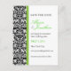 A black-and-white damask wallpaper pattern along with green accents serve to highlight this card. Easily personalized with your name(s), event date and information. Available in alternate colors with matching products.