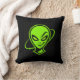Green Alien Good Luck Throw Pillow