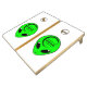 Natural Wood Cornhole Set, Yellow and Purple bags