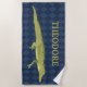 Green Alligator, Navy Blue Background Personalized Beach Towel