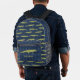 Add a wild touch to your school supplies with this personalized backpack. This patterned backpack has realistic style illustrations of alligators in olive green set against a navy blue diamond patterned background. The front pocket is ready to be personalized with a name, initials or other text.