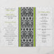 The text on this elegant apple green and black damask wedding program is fully customizable. It is intended to be folded down the middle when you receive it. To change the text, use the personalize option. For more extensive changes, such as changes to the font, font color, font size, or text layout, use the customize it option. Once your text is finalized, if you need to move it around a bit, you can do that using the customize it option. This damask special occasion program is currently customized as a wedding program, but it would work well as a program for other special occasions as well. Really, this would even make a really nice church bulletin with changes to the text. Let your imagination lead you.