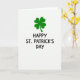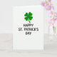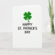 Designed with a bright white background, this St. Patrick’s Day card keeps the scene simple and focused. Near the top sits an emerald four-leaf clover, its heart-shaped leaves arranged in a neat, balanced shape that feels like a small lucky charm shared between close friends 💚. The green stands out strongly against the white, like a fresh spring touch that draws your eyes first. Centered below the clover, the message “HAPPY ST. PATRICK’S DAY” appears in rounded sans-serif letters. The text is black and sits in a tidy stack, giving the design a steady, straightforward look. With no extra textures or shadows, the open space around the clover and words makes everything feel calm and easy to read ☘️. The clover remains the main focal point in the upper portion, with the black greeting placed directly underneath it.