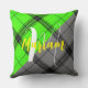 Green And Black Tartan Fabric - Name Monogrammed Throw Pillow