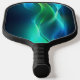Green and blue glowing wavy lines pickleball paddle