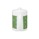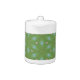 This teapot features a soft abstract leafy pattern in green and blue by artist Jayne Wilson.