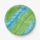 Green and Blue Palm Leaves Pattern Paper Plate