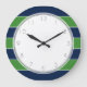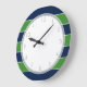 Green and Blue Stripes and Monogram Large Clock