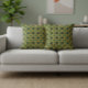 A Green, Blue, Orange And Black Colored Tiled Pattern Throw Pillow