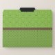 Modern Design Style Repeating Central Pattern With Coordinate Polka Dot Pattern And Ribbon. Two file folders with large repeating central pattern and coordinate pattern. One file folder with small repeating central pattern and coordinate pattern. Folders are black on the inside. Half Circle Checkered Motif With Windowpane Check Plaid Pattern Design. Green and Brown Colorway. © Mydeas/Mydeas Designs. All rights reserved.