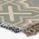 A quality printed throw has its advantages. This is a much finer weave throw than its loopier cousins, and though lighter, it is worth the investment for custom room accessorizing. The back is much prettier than the typical brown, and the fringe on the long sides very vivid, the selvage nicely done. Before photographing, I washed the throw in cold water, delicate, with a thicker woven throw the same size. On tumble dry low, this throw was dry in half the time as the other. This is a very practical quality if you use throws for furniture covers or to wrap up in frequently. The sleekness of the fabric makes it a great layer for accenting or protecting without the feeling of sitting on too much stuff. Perfect for napping or when you feel a light chill coming on. The color printing is beautiful and on this fabric, matched the design and color of my Photoshop image. This is an advantage for blending room fabrics and colors. The fringe on the short sides prints the colors from the design image and therefore varies from the side fringe. I streaked a white fractal line through the plaid pattern to give the illusion of weaving. This printed as crisp as an illusory thread, and put some white in the short side fringe, showing another advantage of print vs loomed- for artistic purposes, line lines, detail, and color integrity can be planned and preserved. My loomed throws have color limitations and more of a needlepoint texture. Print throws reproduce an exact image. The throw felt a little stiff straight out of the package, but this went away in the first delicate wash. Of course I searched the wash water for ink or bleeding and there was none.