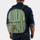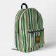 Green and Brown Stripe Modern Monogram Pickleball Printed Backpack