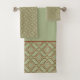 Green and Copper Orange Scroll Tiled Pattern Bath Towel Set