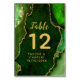 This elegant and glamorous table number wedding sign features a green agate marble background with faux gold glitter accents. The text combines handwritten script and modern sans serif fonts for a classy and sophisticated look. This will be perfect for autumn fall and winter weddings.