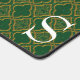 Decorative desk mat done in a green and gold brocade design. Personalize the custom white one letter monogram to suit your needs. Great gift idea for her.