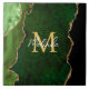 This tile features an elegant and glamorous agate marble background with geode gemstone detailing and faux gold glitter accents. The monogram combines handwritten script and modern sans serif fonts for a classy and sophisticated look. This will make the ideal gift as it can be customized with a name and initial. The deep green hues make it perfect for autumn fall and winter.