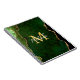 This notebook features an elegant and glamorous agate marble background with geode gemstone detailing and faux gold glitter accents. The monogram combines handwritten script and modern sans serif fonts for a classy and sophisticated look. This will make the ideal gift as it can be customized with a name and initial. The deep green hues make it perfect for autumn fall and winter.