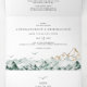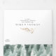 This green and gold mountain all in one tri-fold wedding invitation is perfect for your elegant boho mountain forest wedding. With a rustic emerald green watercolor landscape dotted with trees, birds, and highlights of gold foil. It's just what you're looking for to complete your unique modern destination wedding.