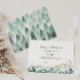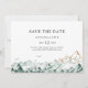 This green and gold mountain horizontal save the date is perfect for your elegant boho mountain forest wedding. With a rustic emerald green watercolor landscape dotted with trees, birds, and highlights of gold foil. It's just what you're looking for to complete your unique modern destination wedding.