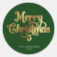 Green and Gold Retro Merry Christmas Script Custom Classic Round Sticker
