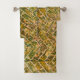 Green and Gold Tie Dye Chevron Pattern Bath Towel Set