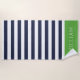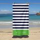 This custom made-to-order beach towel has a preppy horizontal stripe pattern in navy blue, green and white. Personalize it with your name monogram or other custom text in a modern serif font. Use the design tools to choose any background colors, edit the text fonts and colors or upload your own photos to create a custom monogrammed beach towel.