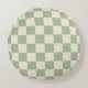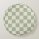 Green and Off White Checkerboard Round Pillow