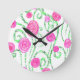 Green and Pink Flower Vines Round Clock
