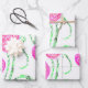Green and Pink Flower Vines Wrapping Paper Sheets