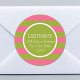 Green and Pink Striped Pattern Custom Monogram Classic Round Sticker