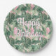 Green and Pink Tropical Leaves | Happy Birthday Paper Plates