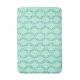 This is an abstract geometric pattern featuring flower petals in shades of green, cream and purple with emerald green, and pink shapes against a mint background.