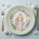 This pretty design features a whimsical illustration of Rapunzel surrounded by pale green and purple flowers.