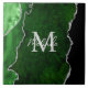 This tile features an elegant and glamorous agate marble background with geode gemstone detailing and faux silver glitter accents. The monogram combines handwritten script and modern sans serif fonts for a classy and sophisticated look. This will make the ideal gift as it can be customized with a name and initial. The deep green hues make it perfect for autumn fall and winter.