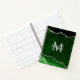 This notebook features an elegant and glamorous agate marble background with geode gemstone detailing and faux silver glitter accents. The monogram combines handwritten script and modern sans serif fonts for a classy and sophisticated look. This will make the ideal gift as it can be customized with a name and initial. The deep green hues make it perfect for autumn fall and winter.