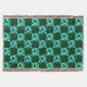Green and sky blue or cyan checkerboard, with small angled rectangles and light and dark tones that can cause a perception of metallic bits and depths.