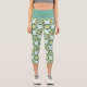 Green and Teal Modern Geometric Flower Pattern Capri Leggings