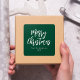 Modern holiday stickers featuring "Merry Christmas" displayed in white brush script lettering with a green background. Personalize the simple Merry Christmas stickers with your name and year in white lettering. The green Christmas stickers are perfect for sealing holiday envelopes, party favor bags, and gifts.