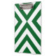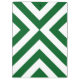 Alternating green and white chevrons converge in this bold original geometric pattern.