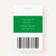 This custom volunteer worker or employee identification badge features a sample logo in the center. The title "VOLUNTEER" is printed above it in bold white font over a green background. You can include your company, business or organization name or additional text below the logo, as well as an employee name. The back of the badge features additional employee or company information printed over a green background, with a sample barcode placed at the bottom. You can replace the scan code with your own, or another image.