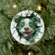 Green and White Dog Peeking Ceramic Ornament