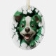 This unique ceramic ornament features a green and white dog peeking out of a hole. It's the perfect addition to your holiday décor, or as a gift for any dog lover. The ornament is made of high-quality ceramic and is sure to last for many years to come.
