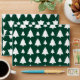 Destei's original pattern of simple white Christmas fir tree silhouettes on a green background color.
