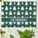 Destei's original pattern of simple white Christmas fir tree silhouettes on a green background color. There is also a personalizable text area for a name or other custom text.