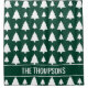 Destei's original pattern of simple white Christmas fir tree silhouettes on a green background color. There is also a personalizable text area for a name or other custom text.