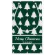 Destei's original pattern of simple white Christmas fir tree silhouettes on a green background color. There is also a personalizable text area for a name or other custom text.