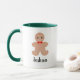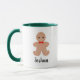 This mug has a picture of a cute gingerbread boy wearing a red bow tie and decorative peppermint candy buttons. The gingerbread boy has slightly darker edges to give it the appearance as if it popped fresh out of the oven. Fine icing detail forms his coat and pants. Personalize this mug by adding a name or message.